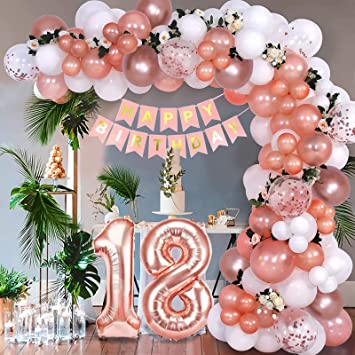"18th Birthday Decorations for Girls | Rose Gold Balloon Arch Garland Kit"