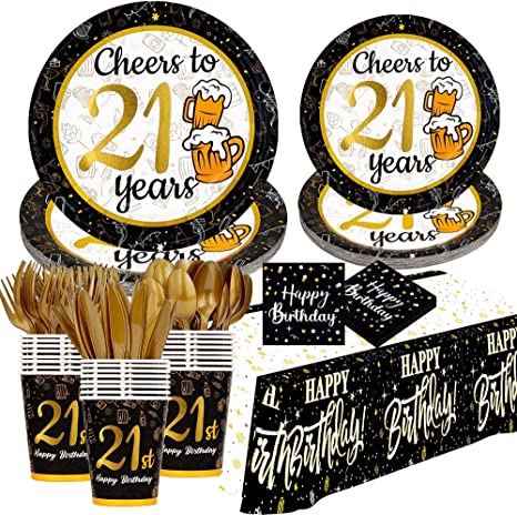 Black and Gold 21st Birthday Party Decorations for Him/Her