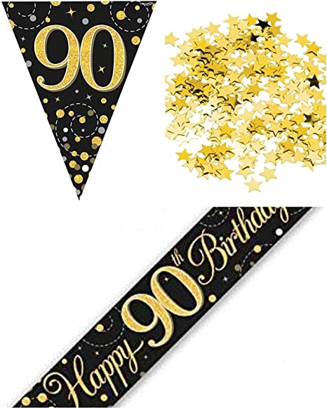 "Create a Memorable 90th Birthday Celebration with this Decoration Kit - Black Gold Theme"