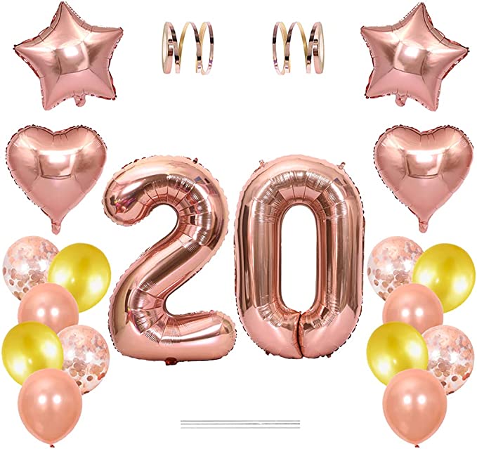 "Xihuimay Rose Gold Balloon Set: Number 20 Balloon Kit with Foil Balloons & Latex Balloons"